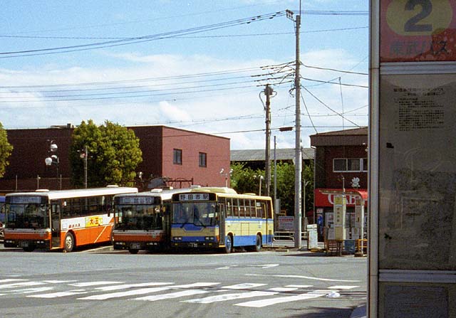 上の写真は駅前のバス停から東武バスの車庫の方向を写したものです。
