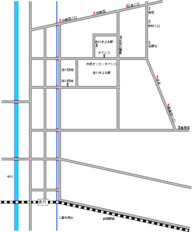 吉川駅と三郷駅を結んでいる路線は2系統あって吉川市の市街地を通るのが小松川経由で